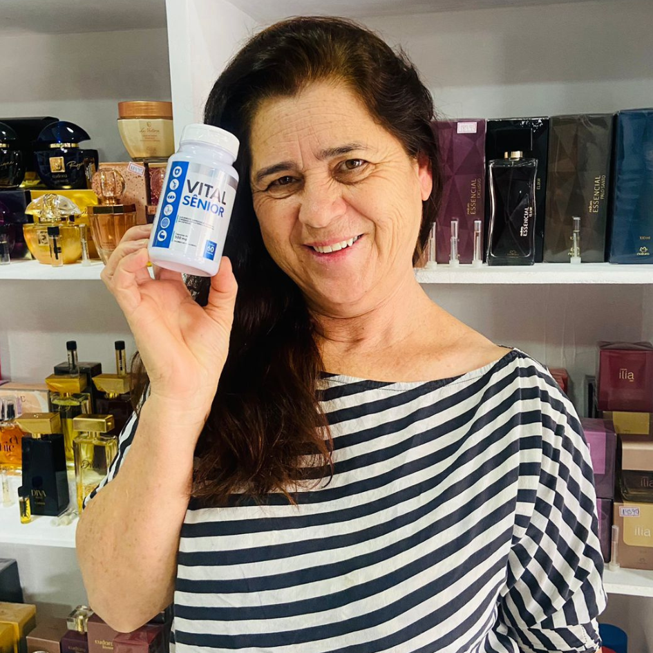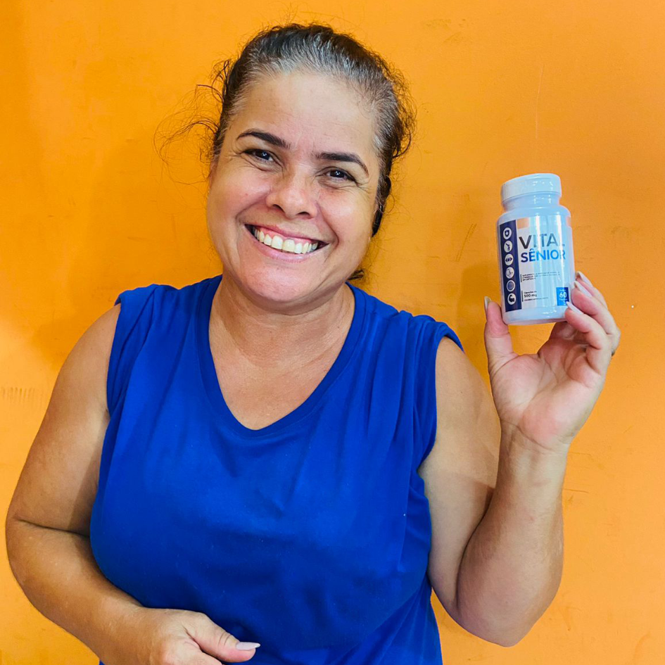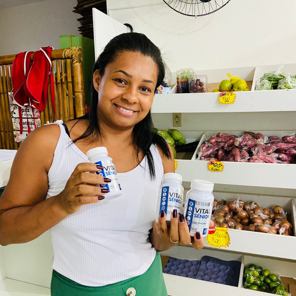 “A fibromialgia dificultava meu trabalho na quitanda, mas com Vital Sênior, encontrei alívio para as dores. Mesmo com os desafios, sigo em frente e feliz!”