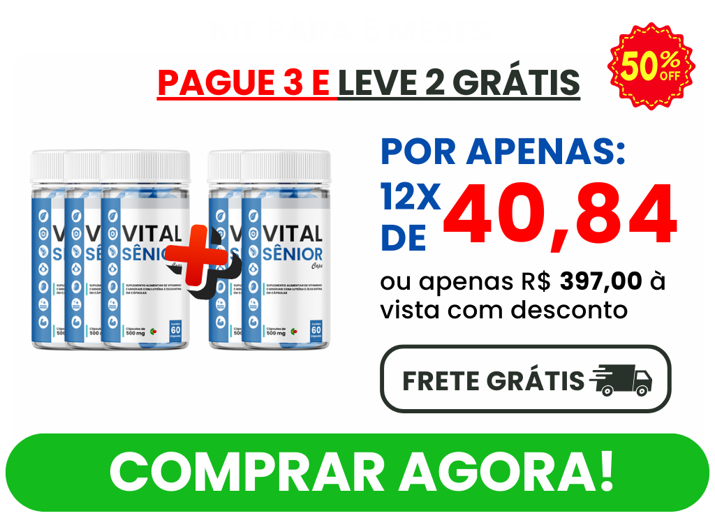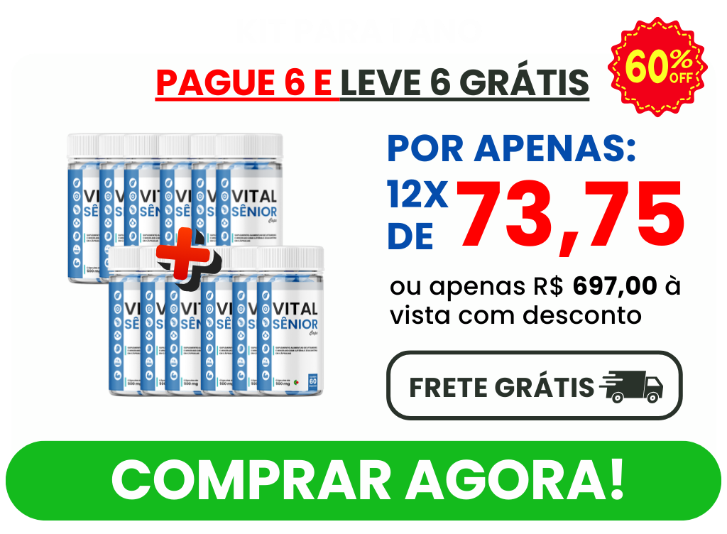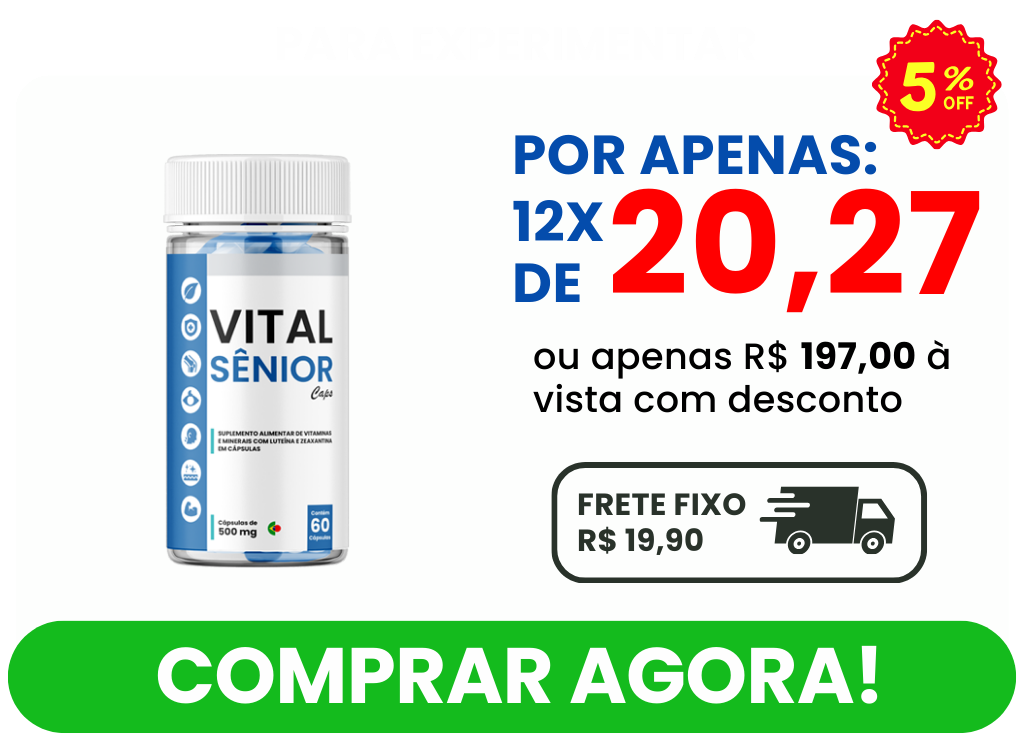 O Vital Sênior é um suplemento nutricional formulado com uma combinação poderosa de 23 ingredientes naturais, incluindo vitaminas e minerais essenciais. Desenvolvido para promover a saúde e o bem-estar, o Vital Sênior é especialmente projetado para ajudar a aliviar dores crônicas e articulares, restaurar células e o tecido cartilaginoso, e melhorar a qualidade de vida.